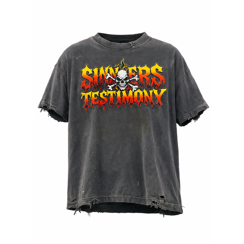 The Hellfire T-Shirt is comprised of 100% cotton and features an oversized boxy fit. The tee features a distressed vintage wash, raw frayed edges, and a full front Hellfire graphic with flame text and skull artwork across the chest. Following your normal size is recommended.